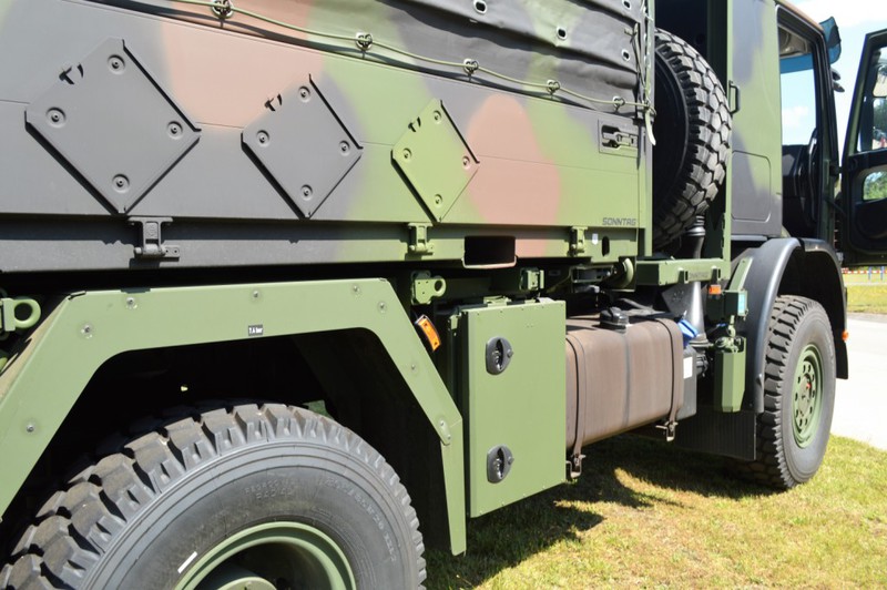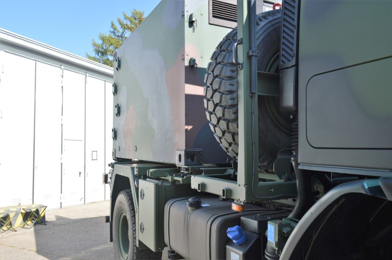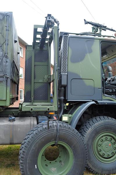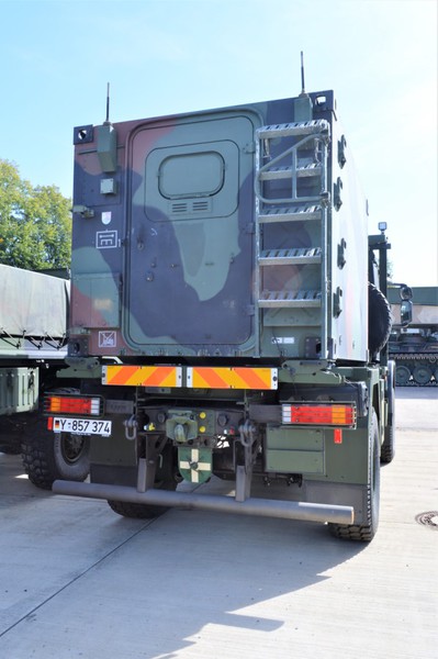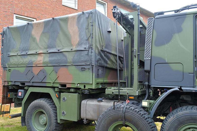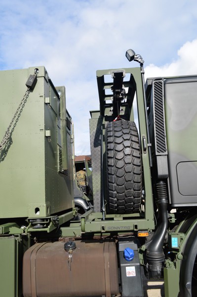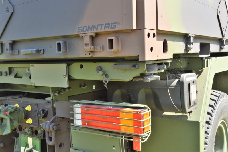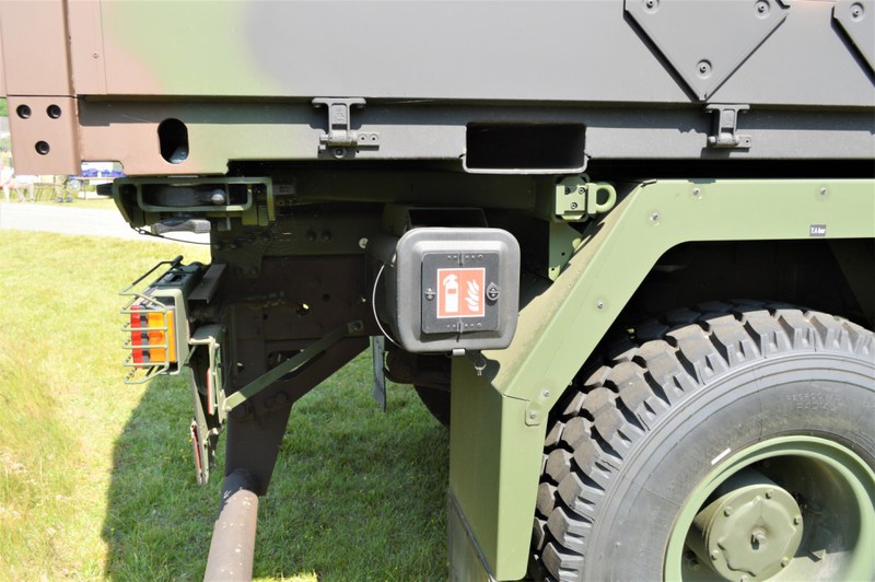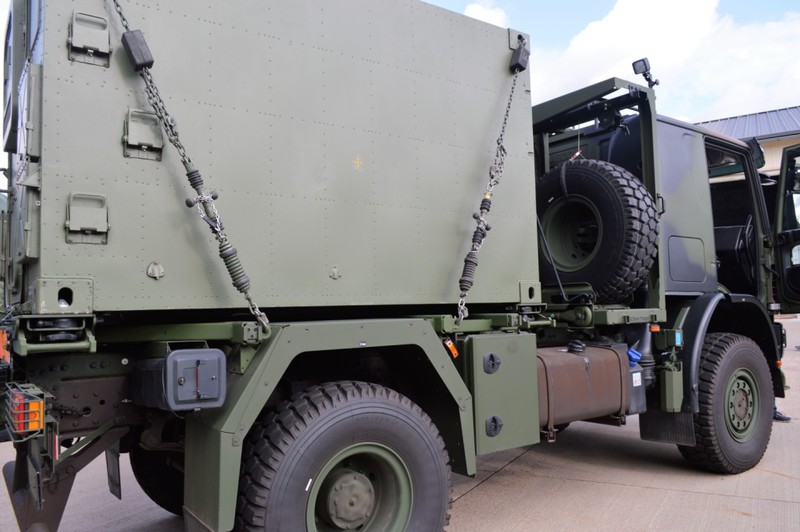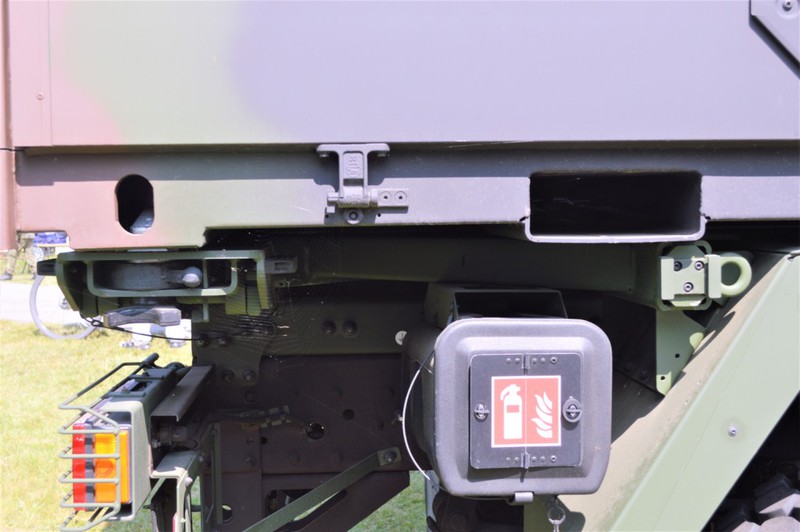 Wenn man die vier Befestigungspunkte (Twist Look) durch ein paar Handgriffe zur Fahrzeugmitte verschiebt, dann lassen sich problemlos die FM Kabinen der Größe I auf dem Tragrahmen befestigen. Die Kabine kann muss aber nicht zwingend mit den Zurrketten gesichert werden. Aussage eines Soldaten: "Wir machen das zur Sicherheit im Gelände, die Zurrpunkte am Fahrzeug sind vorhanden. Außerdem zurren wir die Dinger (FM Kabinen) seit Jahren mit den Ketten, warum sollten wir damit aufhören?"