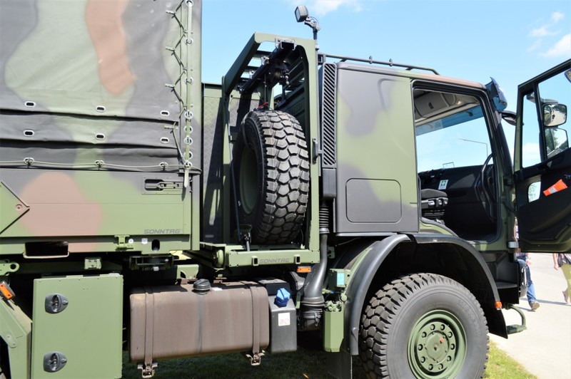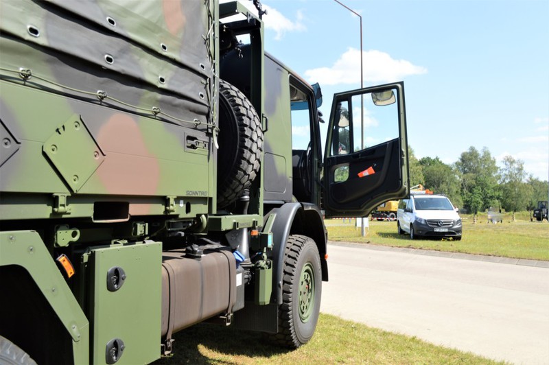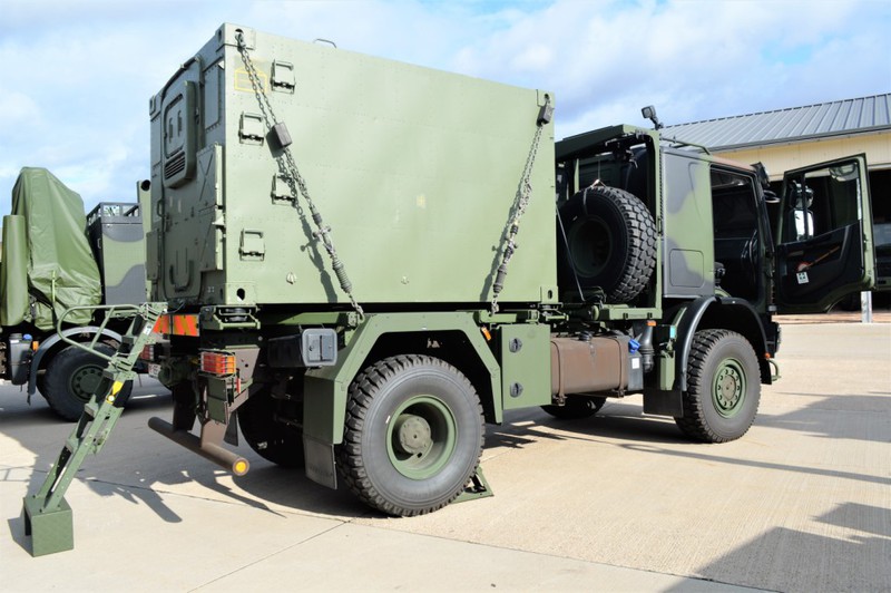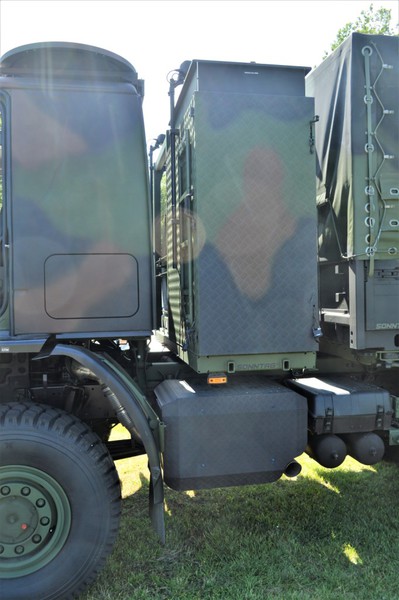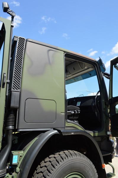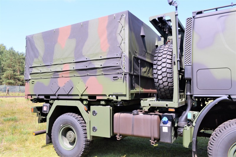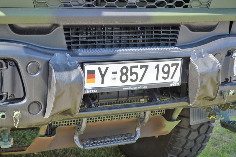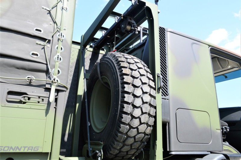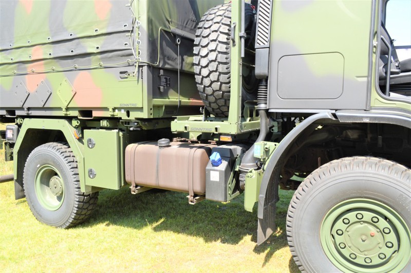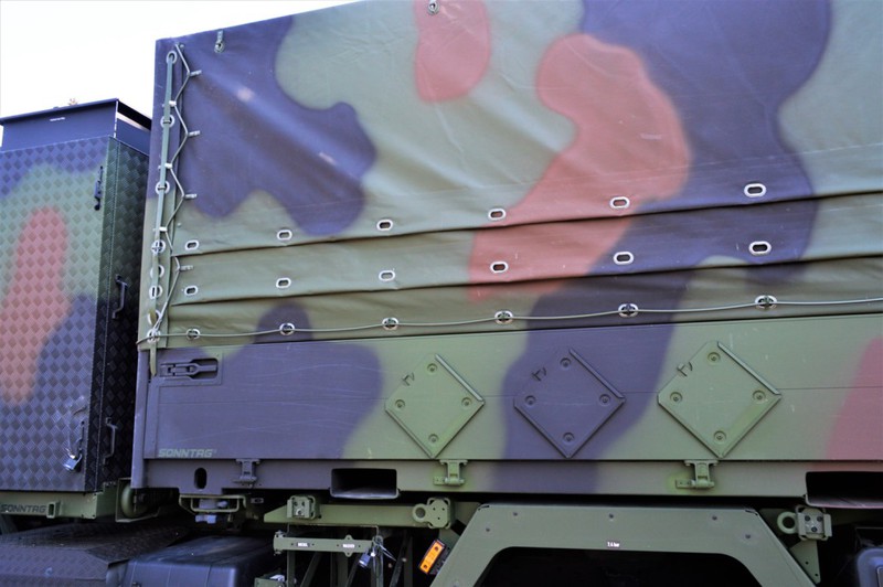 Wenn man die vier Befestigungspunkte (Twist Look) durch ein paar Handgriffe zur Fahrzeugmitte verschiebt, dann lassen sich problemlos die FM Kabinen der Größe I auf dem Tragrahmen befestigen. Die Kabine kann muss aber nicht zwingend mit den Zurrketten gesichert werden. Aussage eines Soldaten: "Wir machen das zur Sicherheit im Gelände, die Zurrpunkte am Fahrzeug sind vorhanden. Außerdem zurren wir die Dinger (FM Kabinen) seit Jahren mit den Ketten, warum sollten wir damit aufhören?"