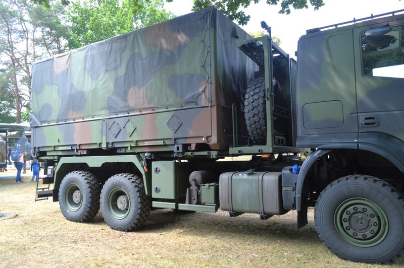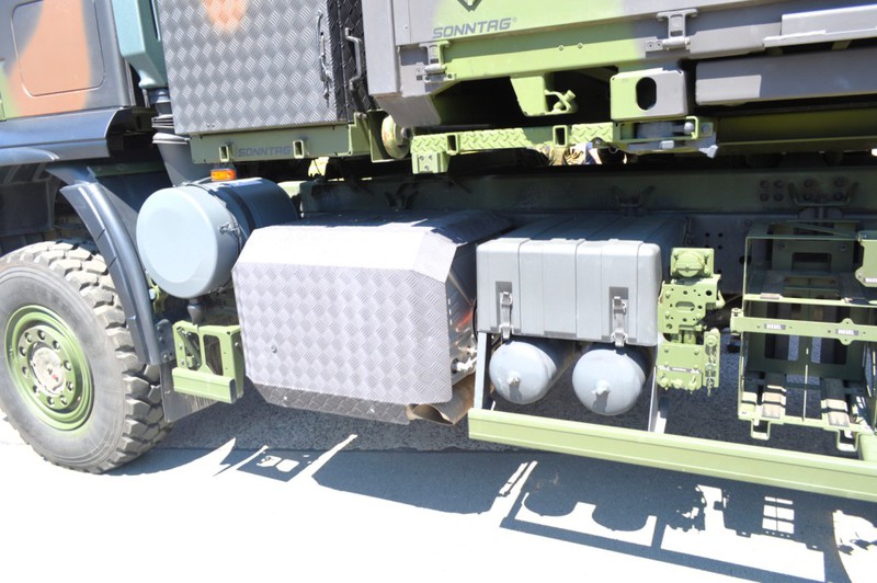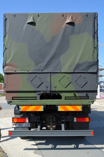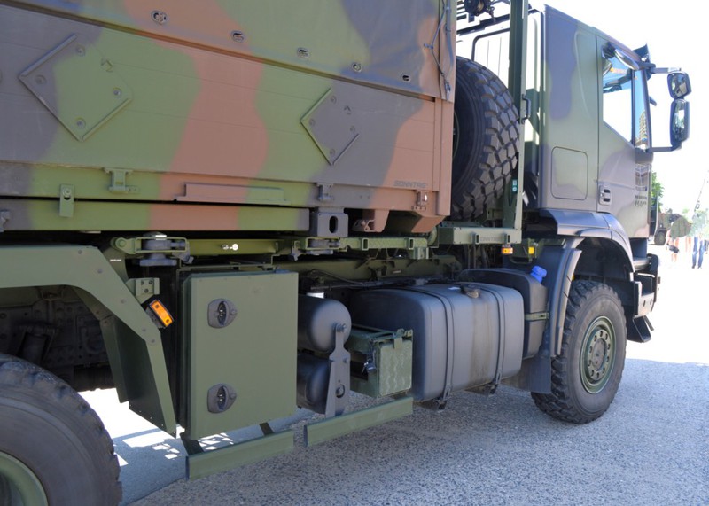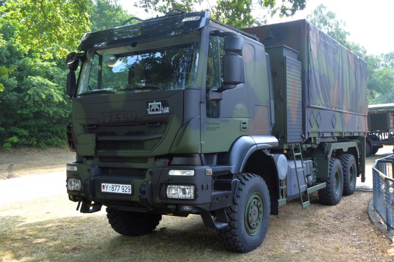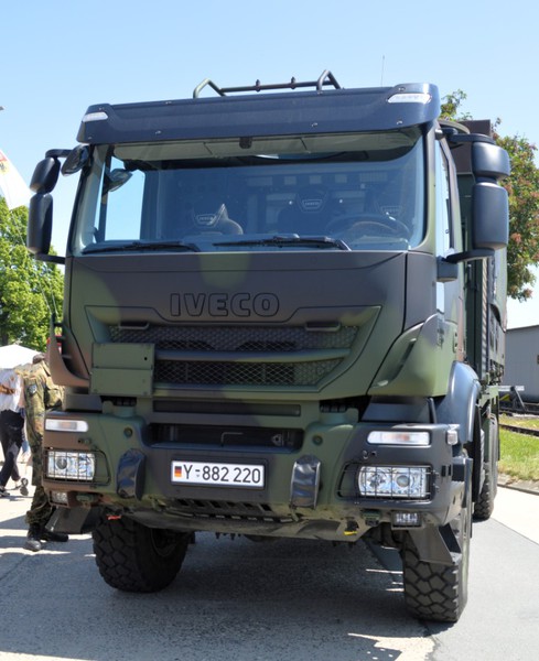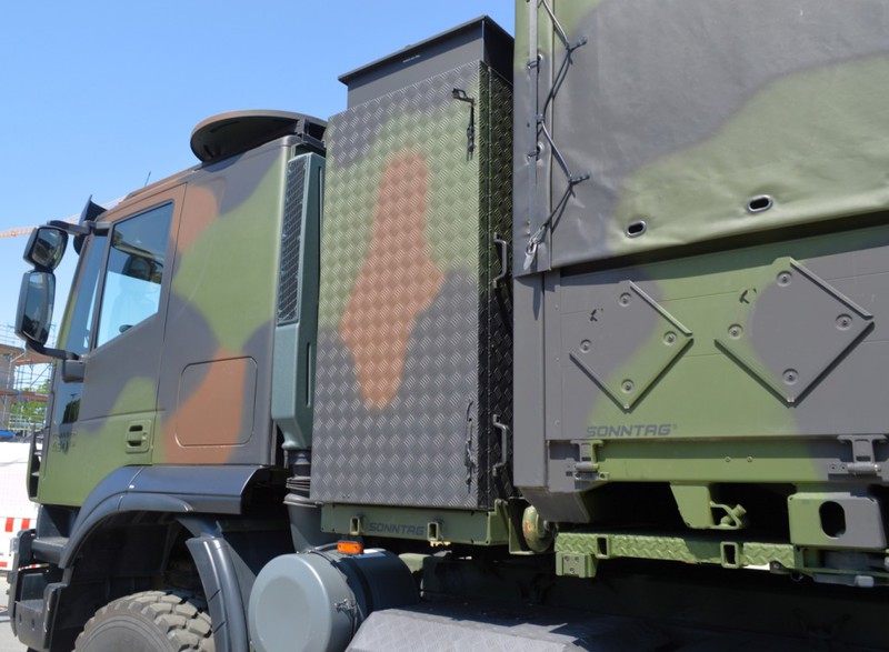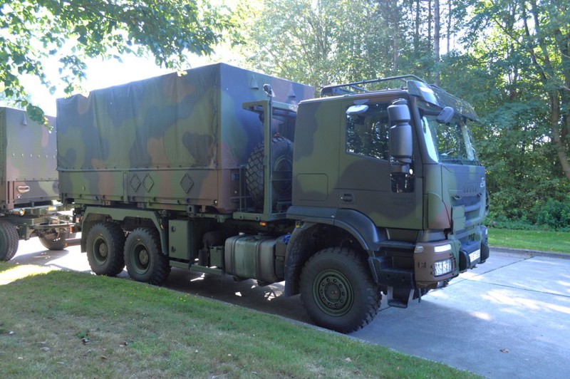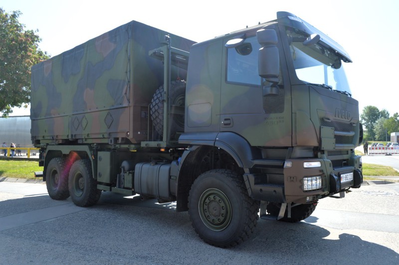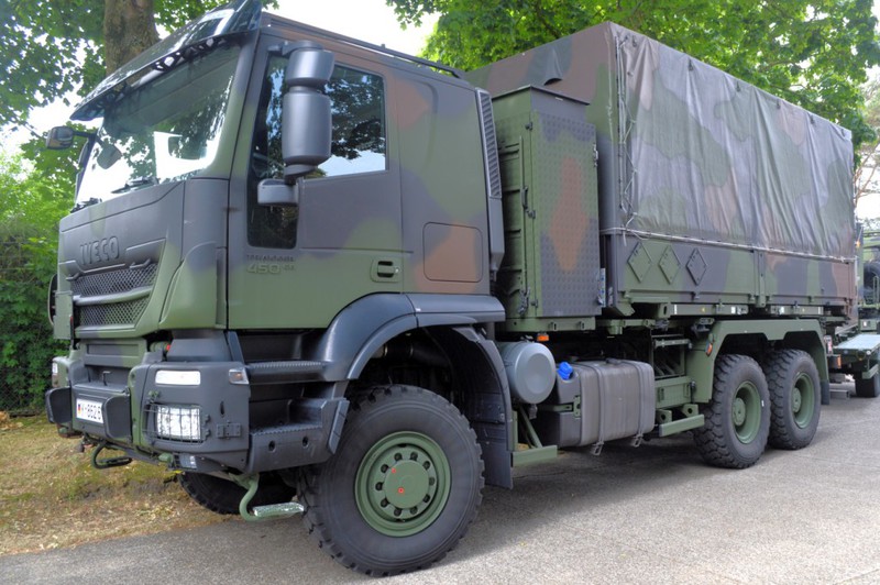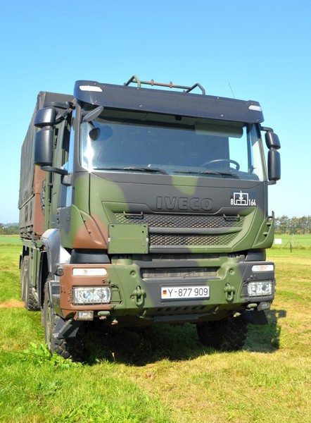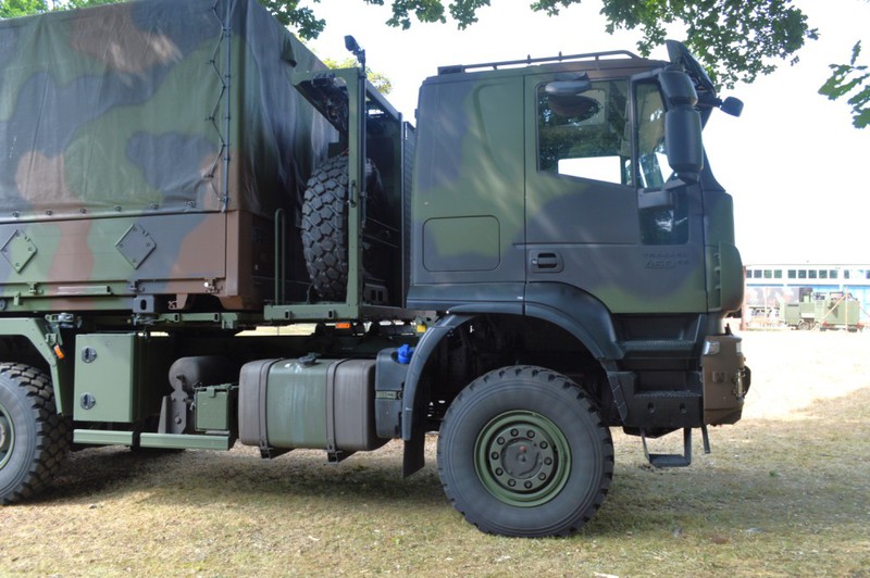 Der IVECO Trakker AT380T 45W ist ein handelsüblicher 3 Achs Lkw mit Allradantrieb und militärischer Sonderausstattung in der Nutzlastklasse von 3 bis 10 Tonnen. Der Lkw ist vorbereitet zur Aufnahme von folgenden Ladungsträgern und verfügt über dementsprechende Befestigungsmöglichkeiten: