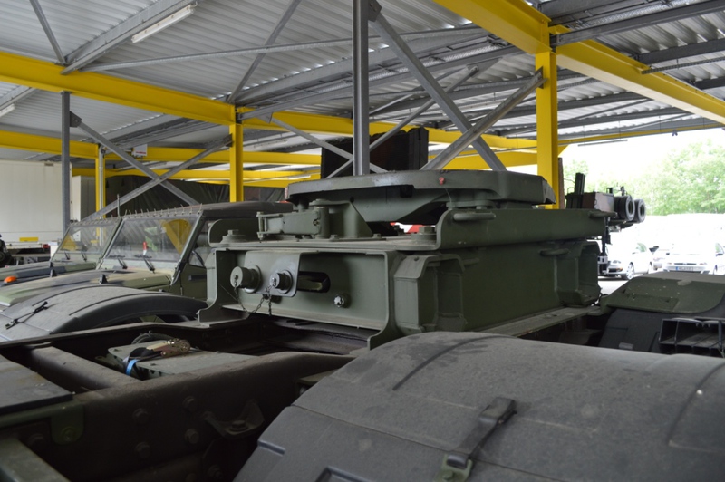 Die zweite Variante wird als Zugfahrzeug für den 30t Tiefladeauflieger verwendet. Bei dieser Variante ist der Sattelteller erhöht und auch hier fällt die Führung von Luft- und Hydraulikleitungen ins Auge. Dies gilt besonders für die Leitungen hinter der Sattelplatte deren Sinn erst einmal Fragen aufwerfen, weil sie bei diesem Auflieger offensichtlich keine Funktion haben.