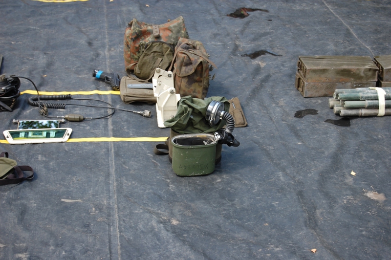 Die gelben Linien stellen den Umriss von Wanne und Turm dar. Der Inhalt ist an den Stellen positioniert wo er auf oder innerhalb des Fahrzeuges verstaut wird.