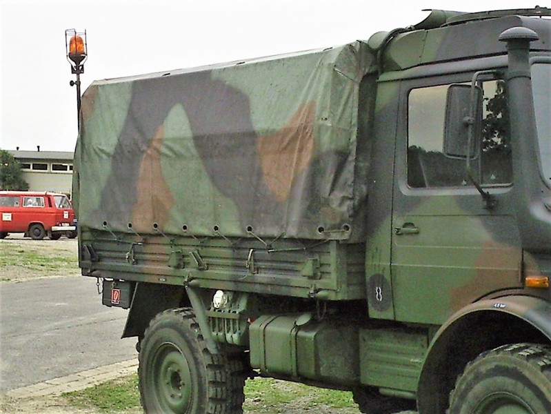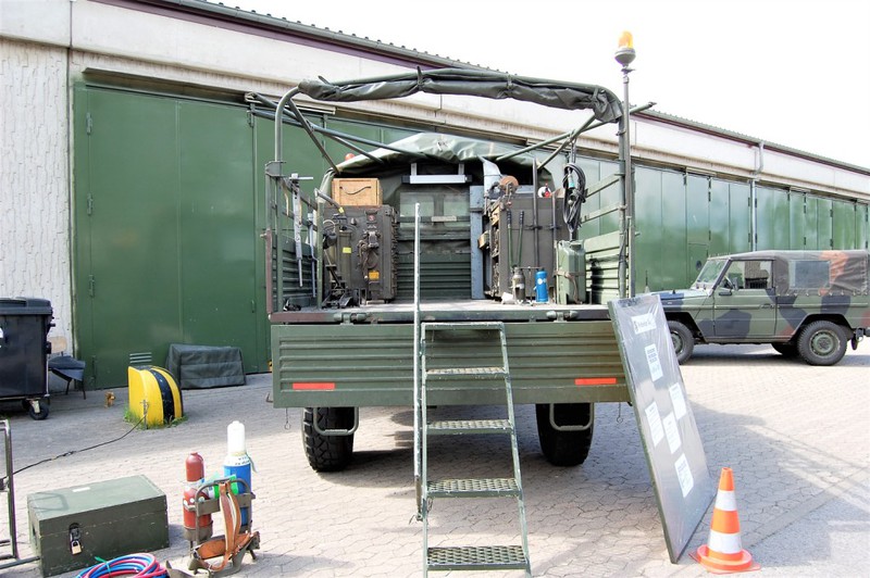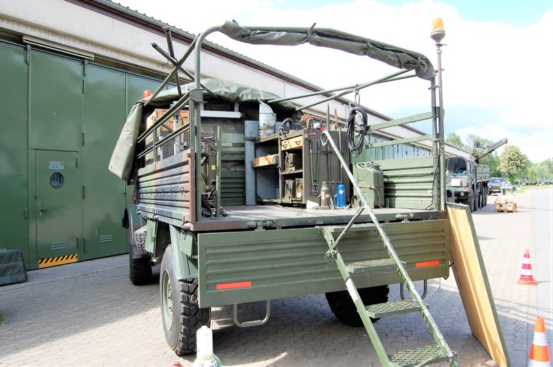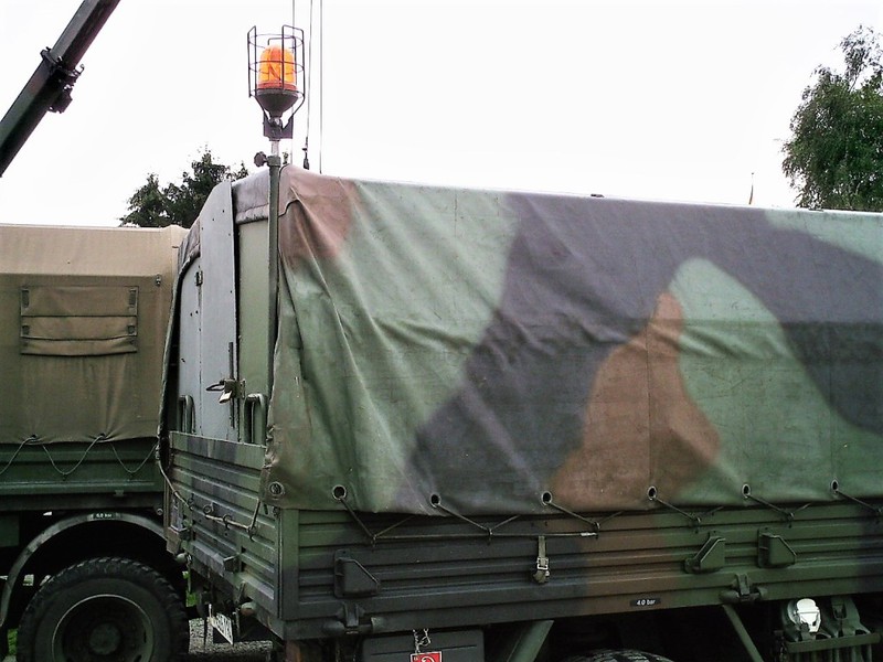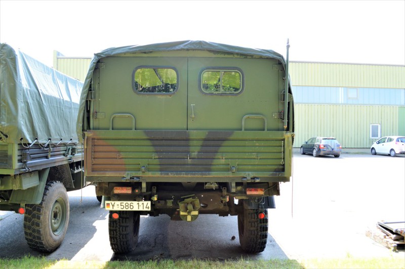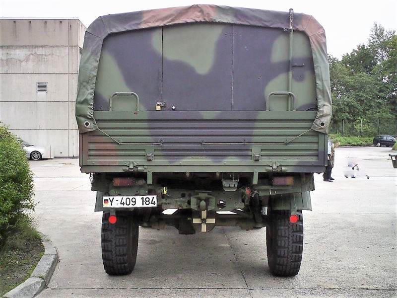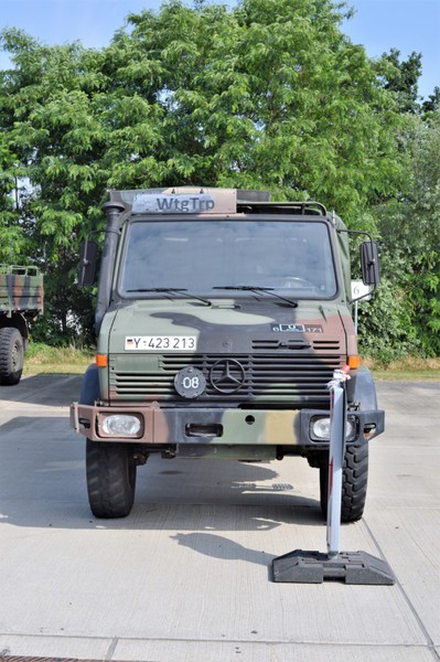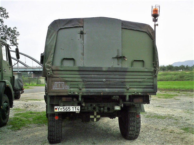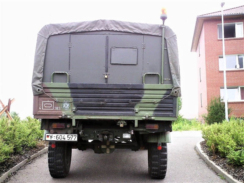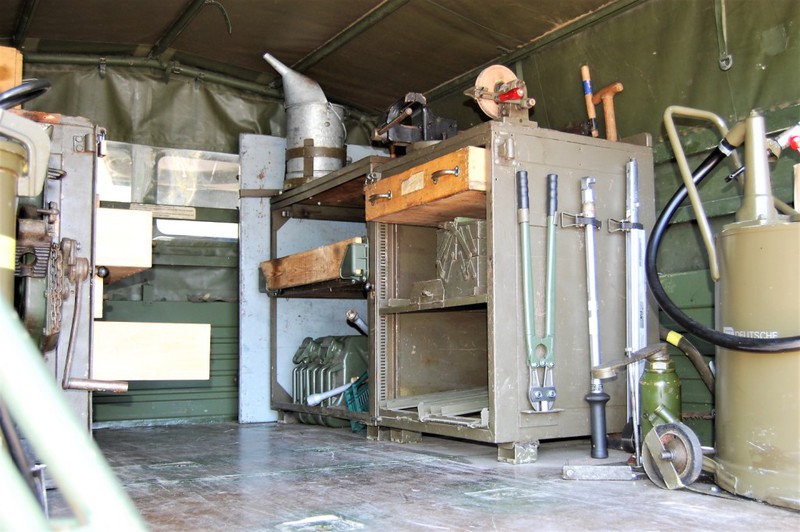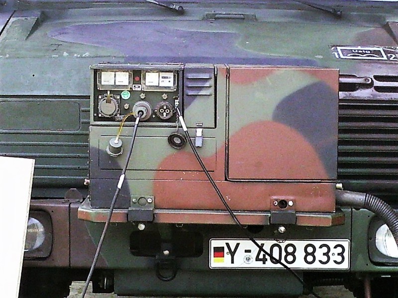 Die Fahrzeuge des WTG Trp fallen alleine schon durch die zwei RKL auf, ein weiteres Detail ist der meist provisorische Abschluss der Pritsche durch eine verschließbare Rückwand. Der Grund ist denke ich für jeden Einleuchtend, der komplette Werkzeugsatz auf dem Fahrzeug hat einen hohen Wert und der jeweilige Truppführer ist dafür persönlich haftbar wenn etwas abhandenkommt. Die Rückwand ist in erster Linie ein Diebstahlschutz und war nicht Bestandteil der regulären Ausstattung, das erklärt auch die Vielfältigkeit der Ausführungen. Der Einsatz eines WTG Trp im Verteidigungseinsatz auf heimischen Boden ist ausreichend, da man Schadfahrzeuge im Notfall abschleppen und in die nächste Dorfschmiede oder in eine Kaserne abschleppen kann um dort größere Reparaturen durchzuführen. Bei einem Einsatz auf fremden Boden, evtl. in einer feindlichen Umgebung, entfällt diese Möglichkeit. Da muss man ein Schadfahrzeug schnell und notfalls auch nur provisorisch zum Laufen bringen und da in der Regel der WTG Trp bei den Kompanien vor Ort zur Verfügung steht hat man dessen Ausrüstung erweitert und ihn damit auch andere Möglichkeiten eröffnet. Äußerlich fällt da nur das 2,2kW SEA auf dem vorderen Stoßfänger auf. Damit ist es möglich auch Elektrowerkzeuge und Elektromaschinen zu betreiben. Bei Straßenmärschen war es die Regel dass der WTG Trp stets am Ende der Kolonne fuhr, meistens war es das einzige Fahrzeug mit RKL und zweitens konnte er bei Ausfall eines Fahrzeuges sofort helfend eingreifen.