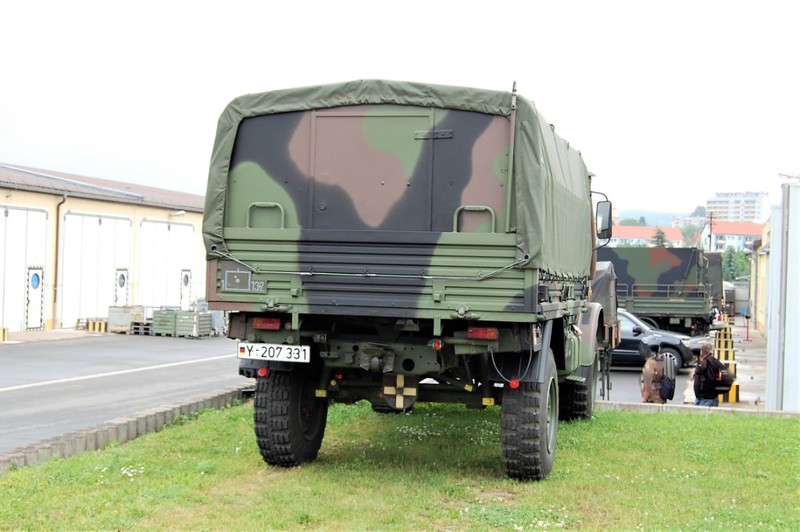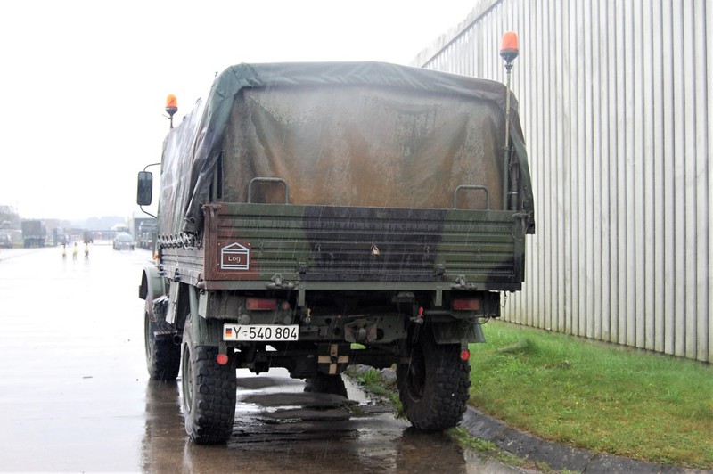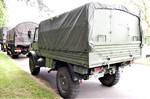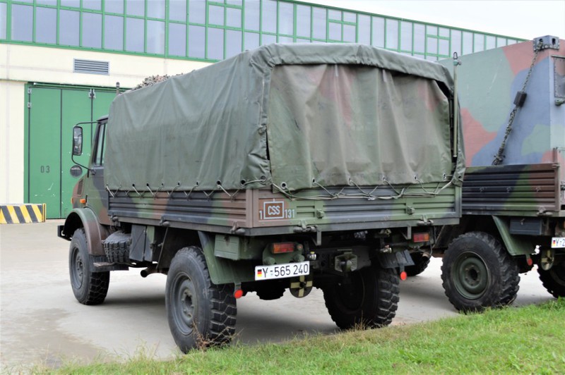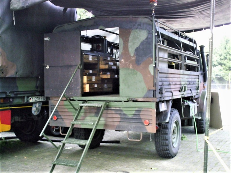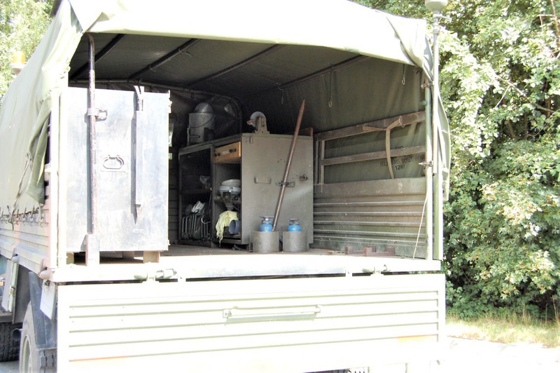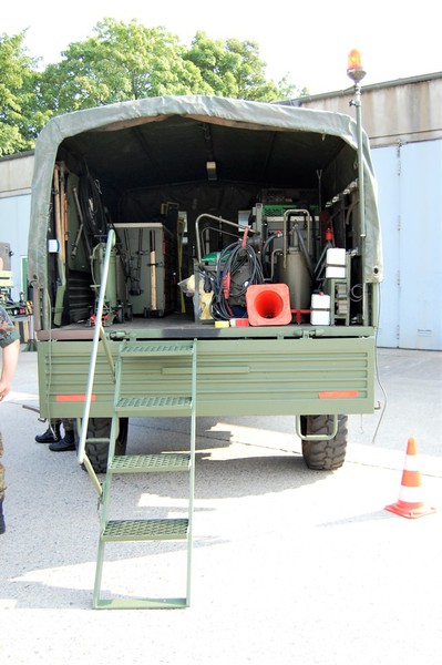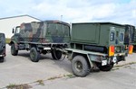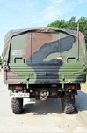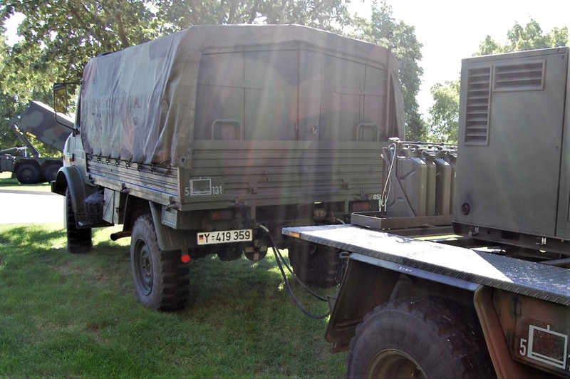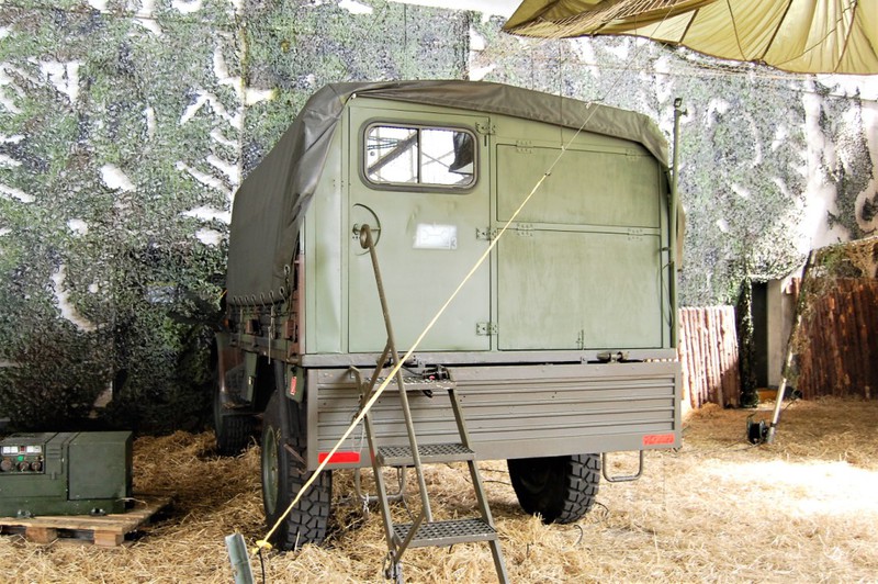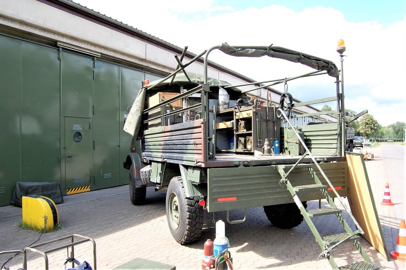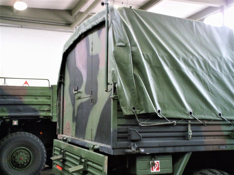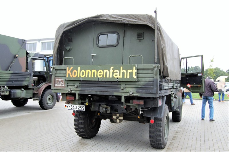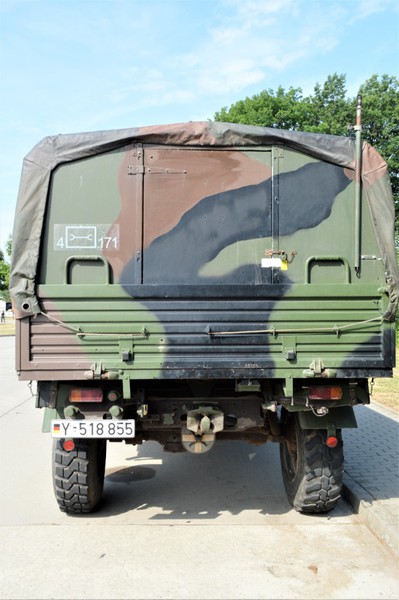 Die Fahrzeuge des WTG Trp fallen alleine schon durch die zwei RKL auf, ein weiteres Detail ist der meist provisorische Abschluss der Pritsche durch eine verschließbare Rückwand. Der Grund ist denke ich für jeden Einleuchtend, der komplette Werkzeugsatz auf dem Fahrzeug hat einen hohen Wert und der jeweilige Truppführer ist dafür persönlich haftbar wenn etwas abhandenkommt. Die Rückwand ist in erster Linie ein Diebstahlschutz und war nicht Bestandteil der regulären Ausstattung, das erklärt auch die Vielfältigkeit der Ausführungen. Der Einsatz eines WTG Trp im Verteidigungseinsatz auf heimischen Boden ist ausreichend, da man Schadfahrzeuge im Notfall abschleppen und in die nächste Dorfschmiede oder in eine Kaserne abschleppen kann um dort größere Reparaturen durchzuführen. Bei einem Einsatz auf fremden Boden, evtl. in einer feindlichen Umgebung, entfällt diese Möglichkeit. Da muss man ein Schadfahrzeug schnell und notfalls auch nur provisorisch zum Laufen bringen und da in der Regel der WTG Trp bei den Kompanien vor Ort zur Verfügung steht hat man dessen Ausrüstung erweitert und ihn damit auch andere Möglichkeiten eröffnet. Äußerlich fällt da nur das 2,2kW SEA auf dem vorderen Stoßfänger auf. Damit ist es möglich auch Elektrowerkzeuge und Elektromaschinen zu betreiben. Bei Straßenmärschen war es die Regel dass der WTG Trp stets am Ende der Kolonne fuhr, meistens war es das einzige Fahrzeug mit RKL und zweitens konnte er bei Ausfall eines Fahrzeuges sofort helfend eingreifen.
