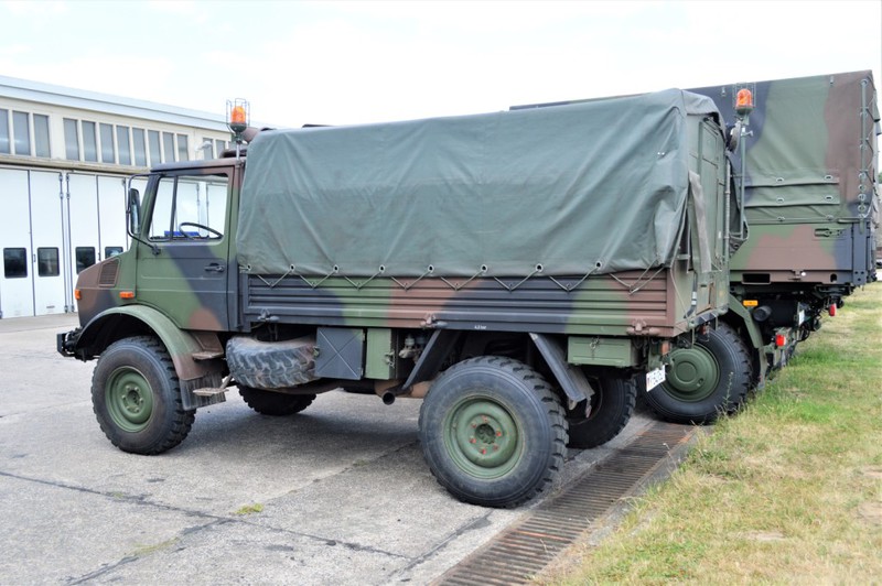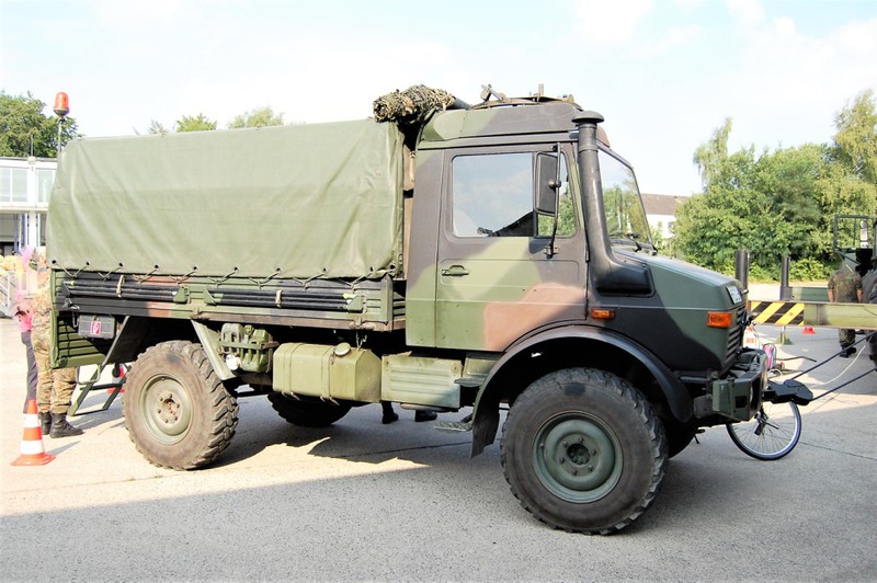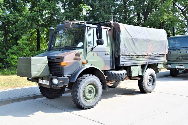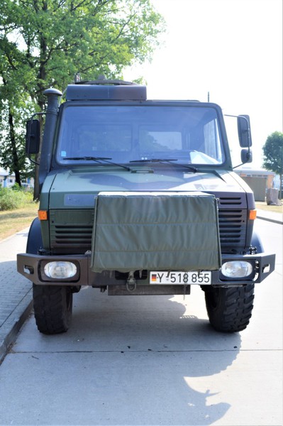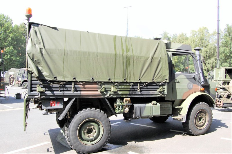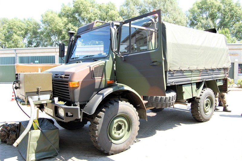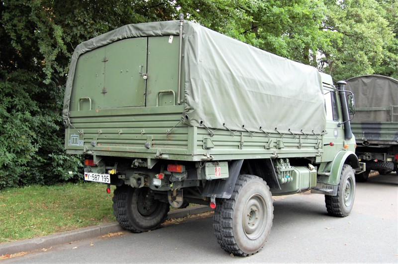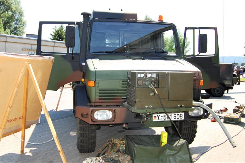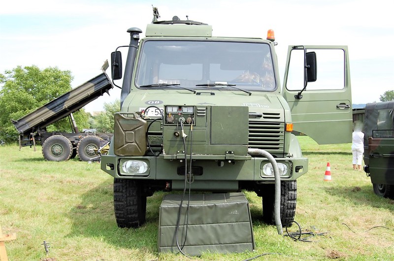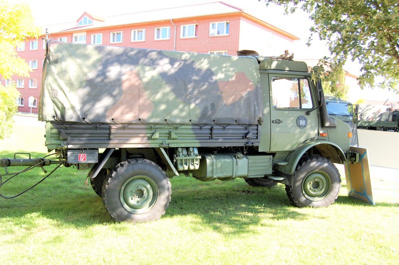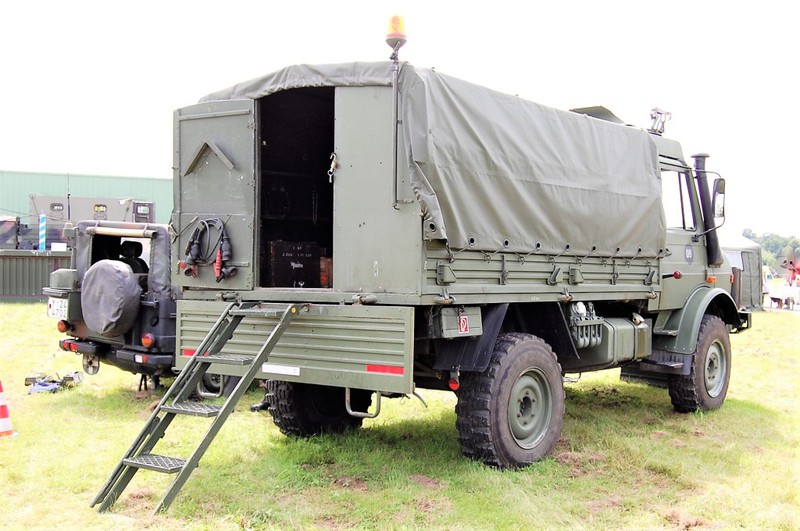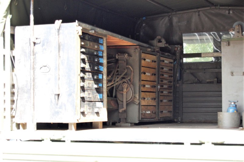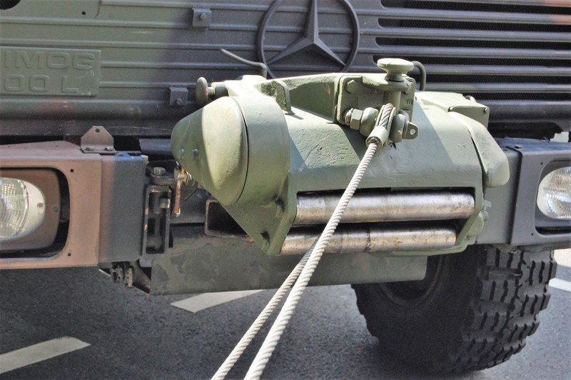 Die Fahrzeuge des WTG Trp fallen alleine schon durch die zwei RKL auf, ein weiteres Detail ist der meist provisorische Abschluss der Pritsche durch eine verschließbare Rückwand. Der Grund ist denke ich für jeden Einleuchtend, der komplette Werkzeugsatz auf dem Fahrzeug hat einen hohen Wert und der jeweilige Truppführer ist dafür persönlich haftbar wenn etwas abhandenkommt. Die Rückwand ist in erster Linie ein Diebstahlschutz und war nicht Bestandteil der regulären Ausstattung, das erklärt auch die Vielfältigkeit der Ausführungen. Der Einsatz eines WTG Trp im Verteidigungseinsatz auf heimischen Boden ist ausreichend, da man Schadfahrzeuge im Notfall abschleppen und in die nächste Dorfschmiede oder in eine Kaserne abschleppen kann um dort größere Reparaturen durchzuführen. Bei einem Einsatz auf fremden Boden, evtl. in einer feindlichen Umgebung, entfällt diese Möglichkeit. Da muss man ein Schadfahrzeug schnell und notfalls auch nur provisorisch zum Laufen bringen und da in der Regel der WTG Trp bei den Kompanien vor Ort zur Verfügung steht hat man dessen Ausrüstung erweitert und ihn damit auch andere Möglichkeiten eröffnet. Äußerlich fällt da nur das 2,2kW SEA auf dem vorderen Stoßfänger auf. Damit ist es möglich auch Elektrowerkzeuge und Elektromaschinen zu betreiben. Bei Straßenmärschen war es die Regel dass der WTG Trp stets am Ende der Kolonne fuhr, meistens war es das einzige Fahrzeug mit RKL und zweitens konnte er bei Ausfall eines Fahrzeuges sofort helfend eingreifen.