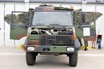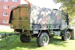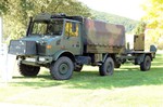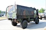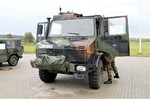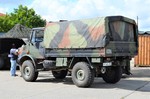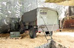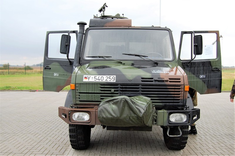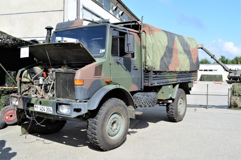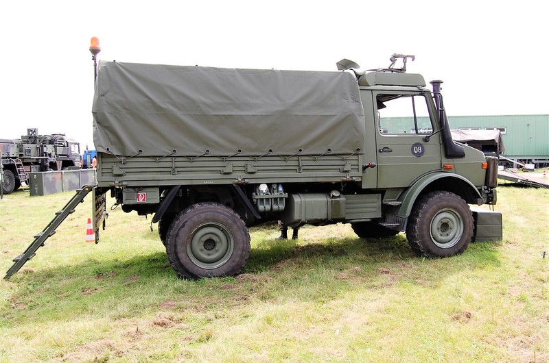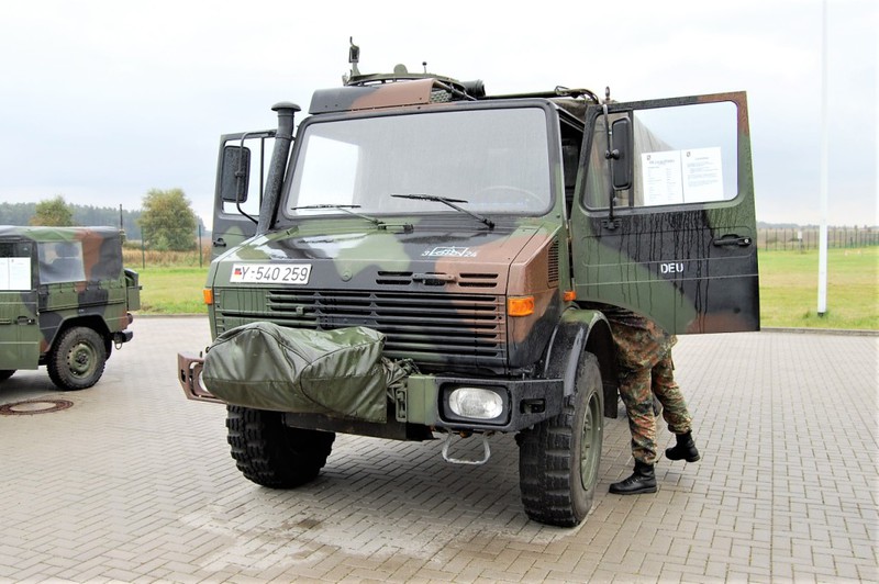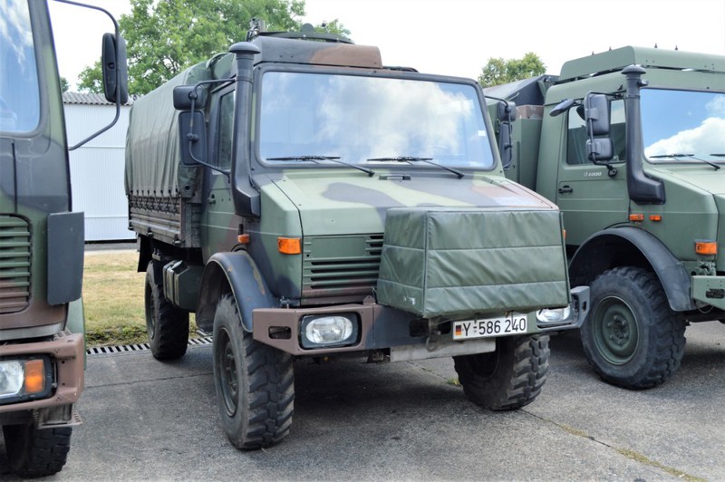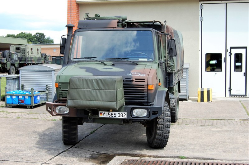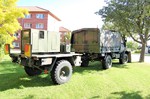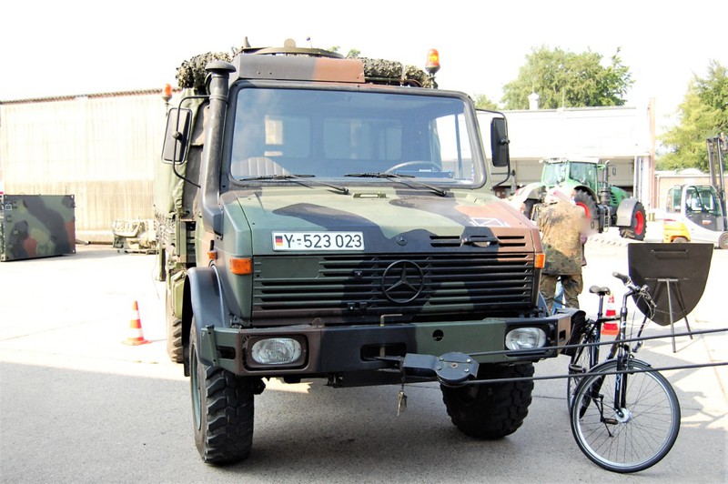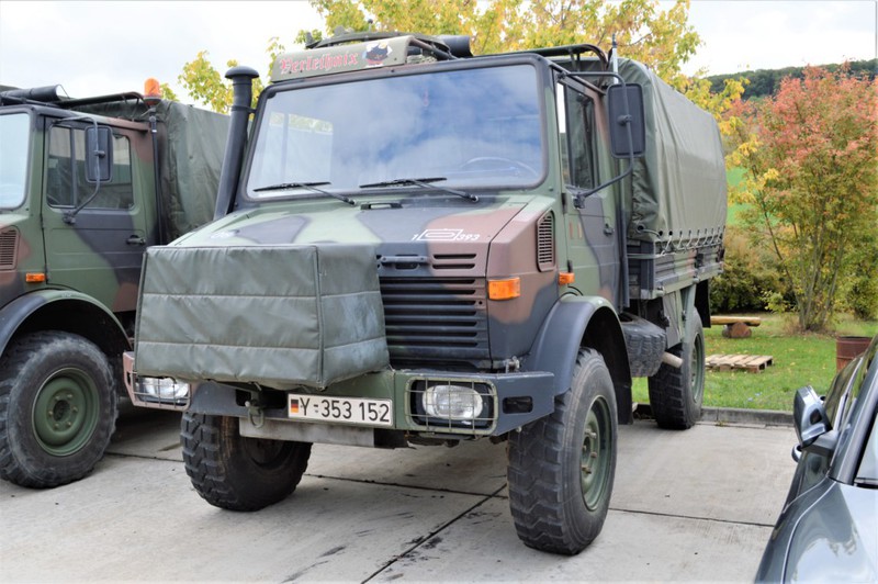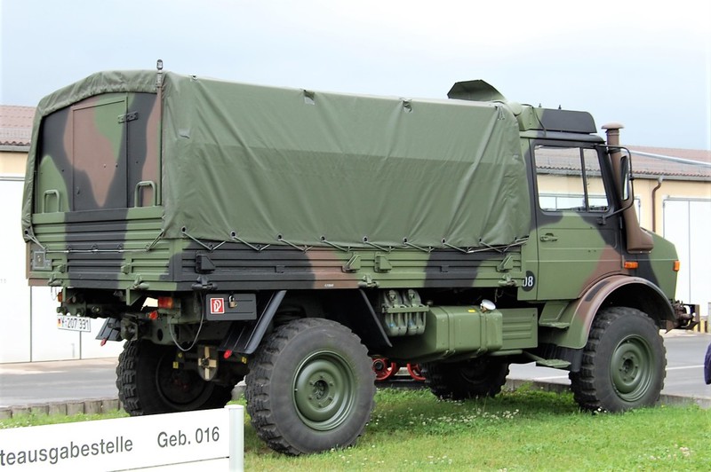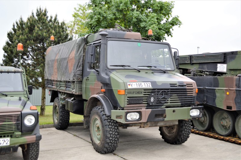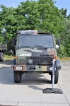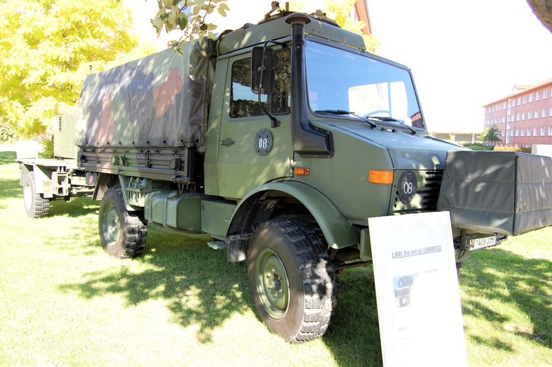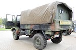 Die Fahrzeuge des WTG Trp fallen alleine schon durch die zwei RKL auf, ein weiteres Detail ist der meist provisorische Abschluss der Pritsche durch eine verschließbare Rückwand. Der Grund ist denke ich für jeden Einleuchtend, der komplette Werkzeugsatz auf dem Fahrzeug hat einen hohen Wert und der jeweilige Truppführer ist dafür persönlich haftbar wenn etwas abhandenkommt. Die Rückwand ist in erster Linie ein Diebstahlschutz und war nicht Bestandteil der regulären Ausstattung, das erklärt auch die Vielfältigkeit der Ausführungen. Der Einsatz eines WTG Trp im Verteidigungseinsatz auf heimischen Boden ist ausreichend, da man Schadfahrzeuge im Notfall abschleppen und in die nächste Dorfschmiede oder in eine Kaserne abschleppen kann um dort größere Reparaturen durchzuführen. Bei einem Einsatz auf fremden Boden, evtl. in einer feindlichen Umgebung, entfällt diese Möglichkeit. Da muss man ein Schadfahrzeug schnell und notfalls auch nur provisorisch zum Laufen bringen und da in der Regel der WTG Trp bei den Kompanien vor Ort zur Verfügung steht hat man dessen Ausrüstung erweitert und ihn damit auch andere Möglichkeiten eröffnet. Äußerlich fällt da nur das 2,2kW SEA auf dem vorderen Stoßfänger auf. Damit ist es möglich auch Elektrowerkzeuge und Elektromaschinen zu betreiben. Bei Straßenmärschen war es die Regel dass der WTG Trp stets am Ende der Kolonne fuhr, meistens war es das einzige Fahrzeug mit RKL und zweitens konnte er bei Ausfall eines Fahrzeuges sofort helfend eingreifen.