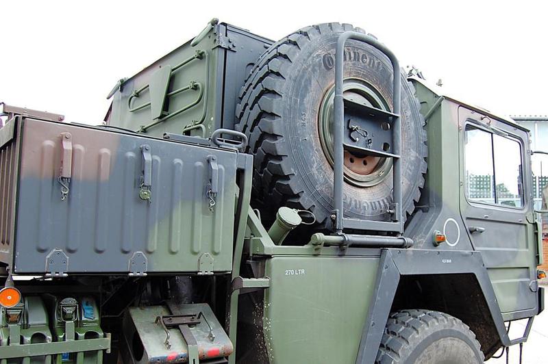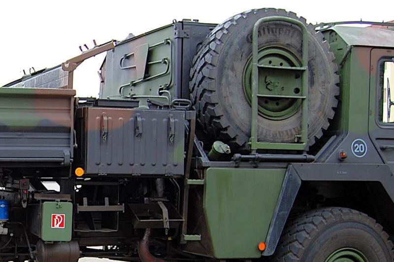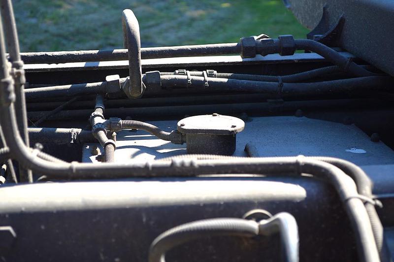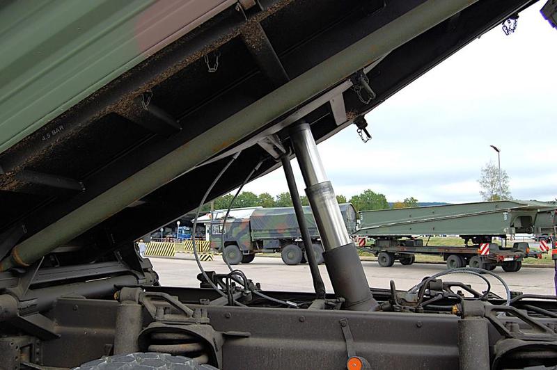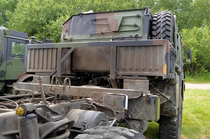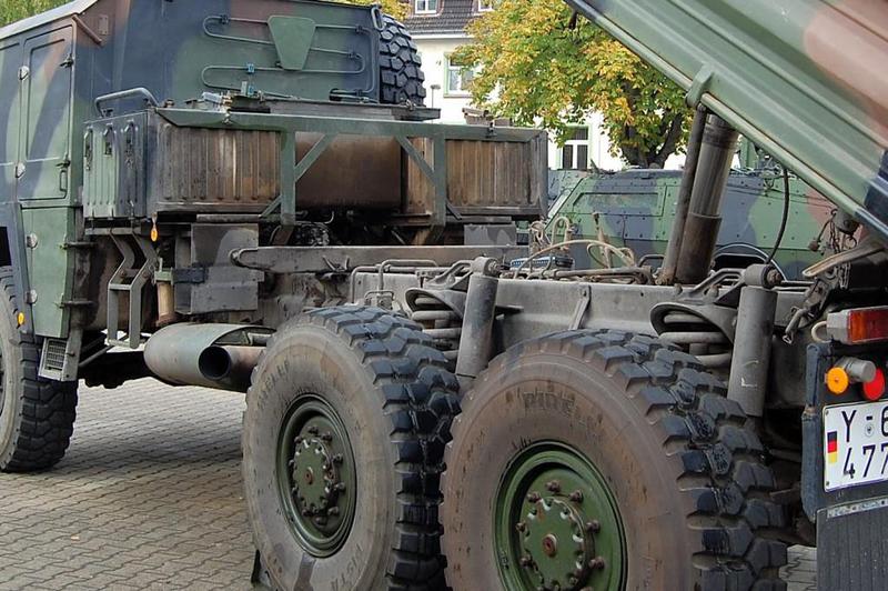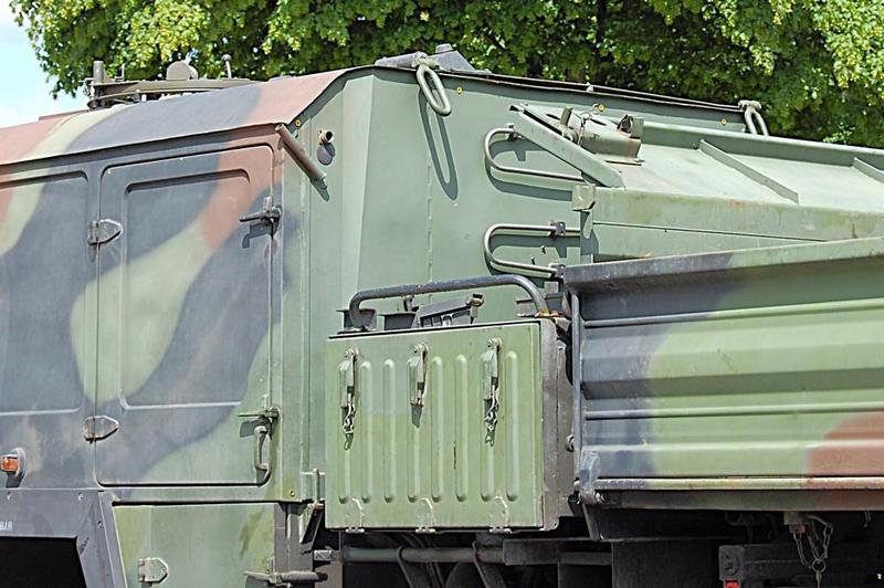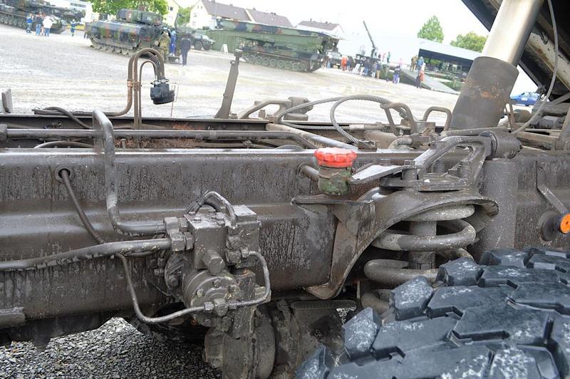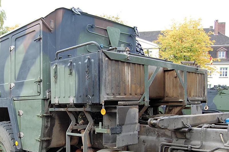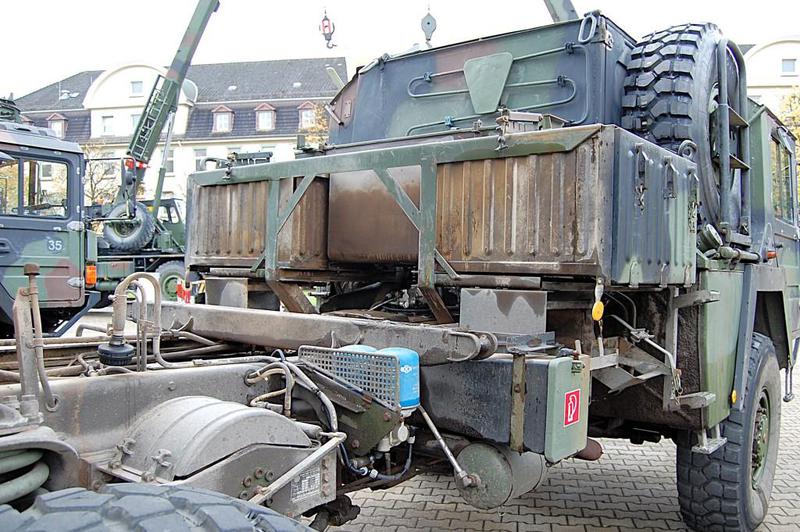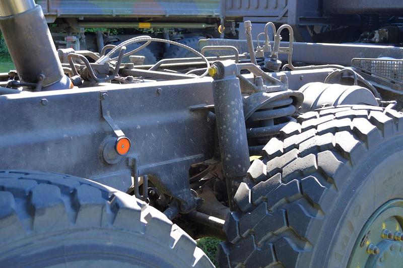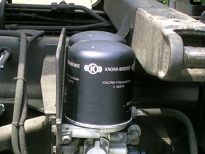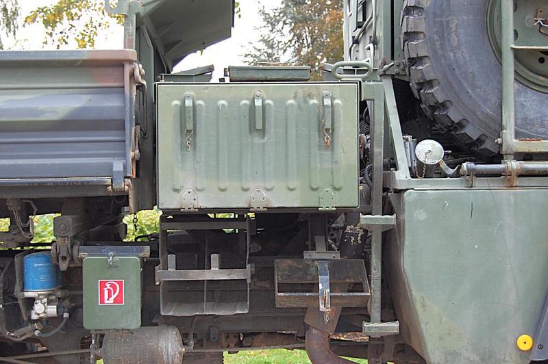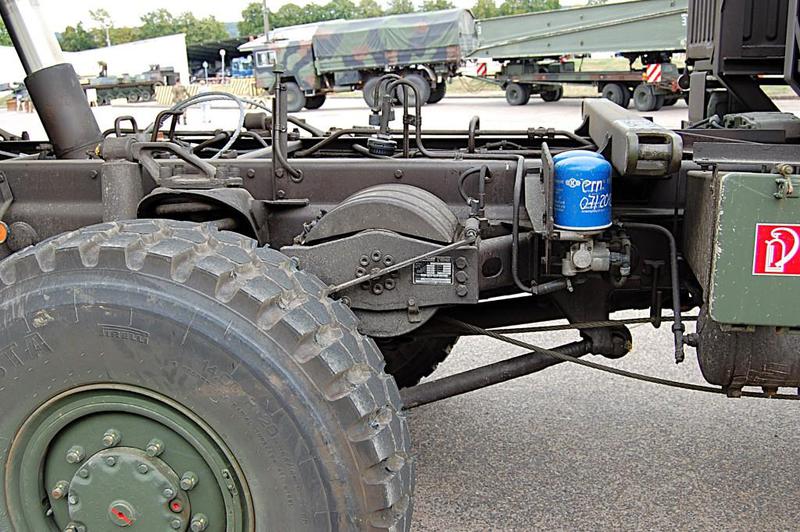 Auf dem zweiten Bild sieht man die Kartuschen der Lufttrockneranlage und die neuen Rohrleitungen an der Fahrerhausrückwand (Gelb eingekreist). Diese Änderung wurde an allen Fahrzeugen der Kat 1 Reihe (5, 7, und 10t mil gl) durchgeführt!