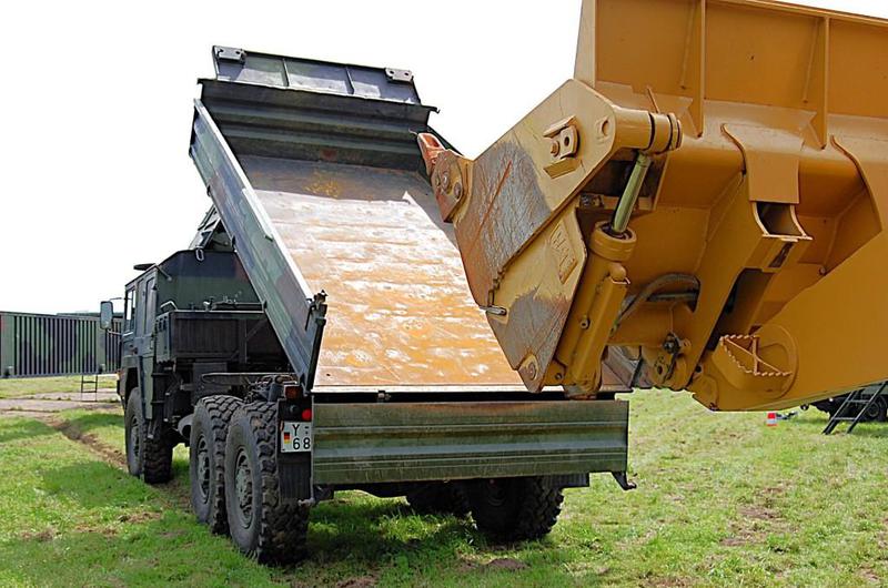 Bei den Pionieren findet den Lkw 7t mil gl Kipper, er dient dort zum Transport von kippfähigen Baustoffen wie Sand, Kies und Erde. Das Fahrzeug ist mit einer Kippbrücke ausgerüstet, die nach 3 Seiten kippbar ist. Es ist möglich, die hintere Bordwand zu entfernen und diese an der vorderen Bordwand zu verstauen. Das Fahrzeug konnte auch max 2 Pontons des Hohlplattenbrückensystems aufnehmen, welche durch einfaches kippen nach hinten abgeladen werden konnten.