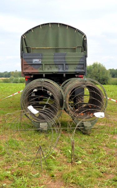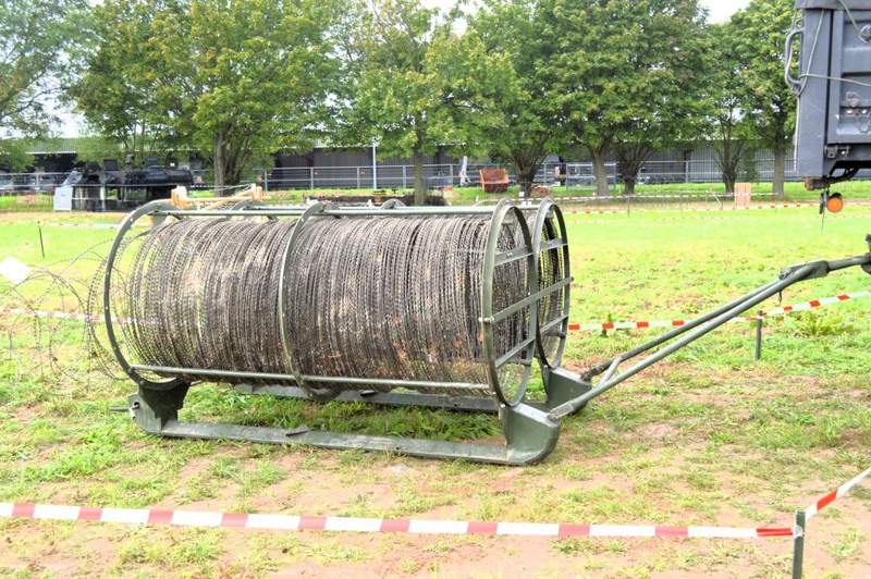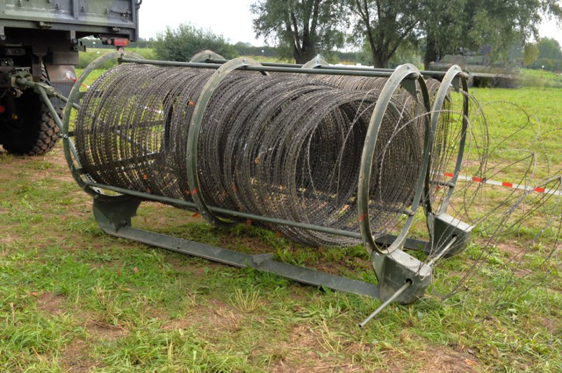 Zum schnellen Verlegen über eine längere Strecke einer S-Rollen-Sperre. Diese Konstruktion sieht selbstgestrickt aus und damit lassen sich 2S-Drahtrollen verlegen.
