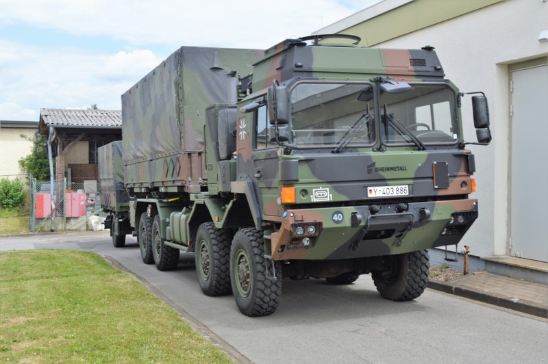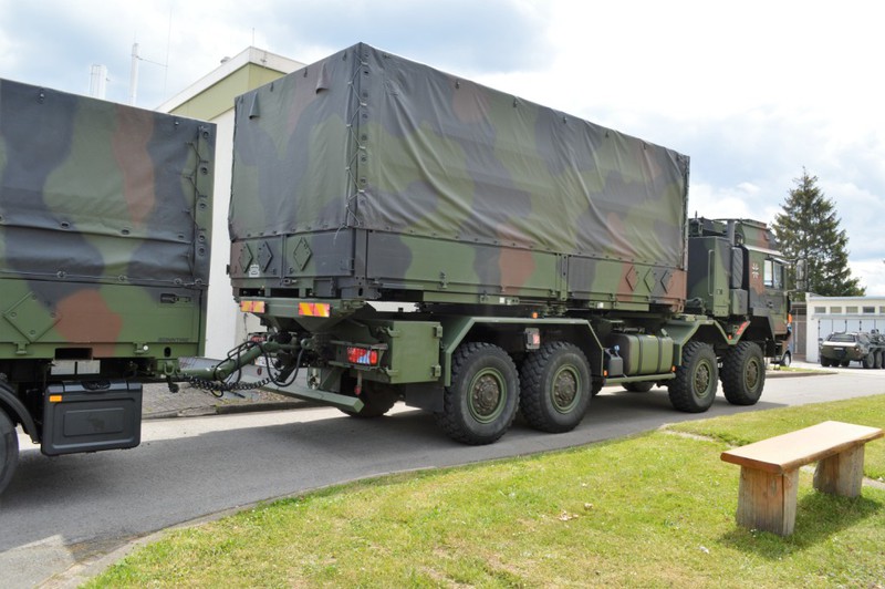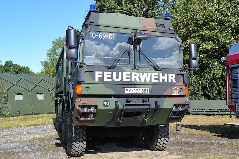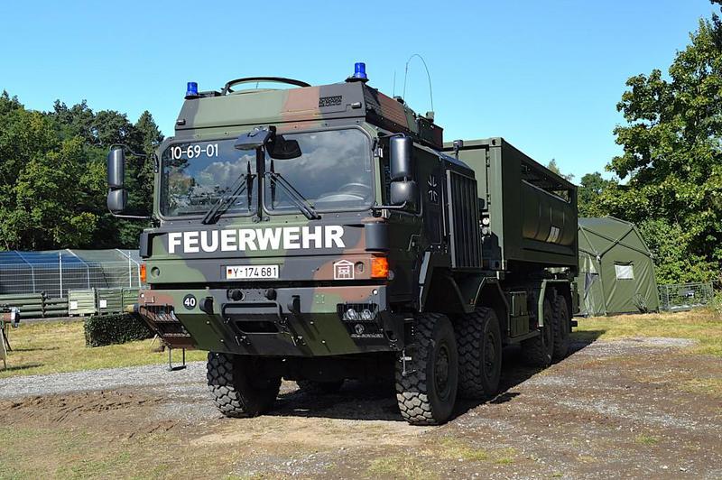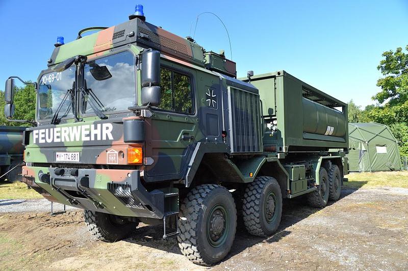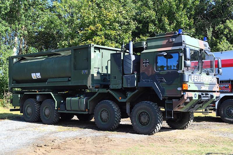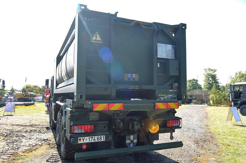 Die Bundeswehrfeuerwehr setzt als Zubringerfahrzeug den UTF 15t mit dem 10m³ Wassercontainer des MULTI-System ein.