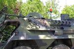 Mit der Hülle eines Kegelstumpfturms des BTR 60PB aus Restbeständen, dient dieser TPz als feindlicher Radschützenpanzer-Darsteller.