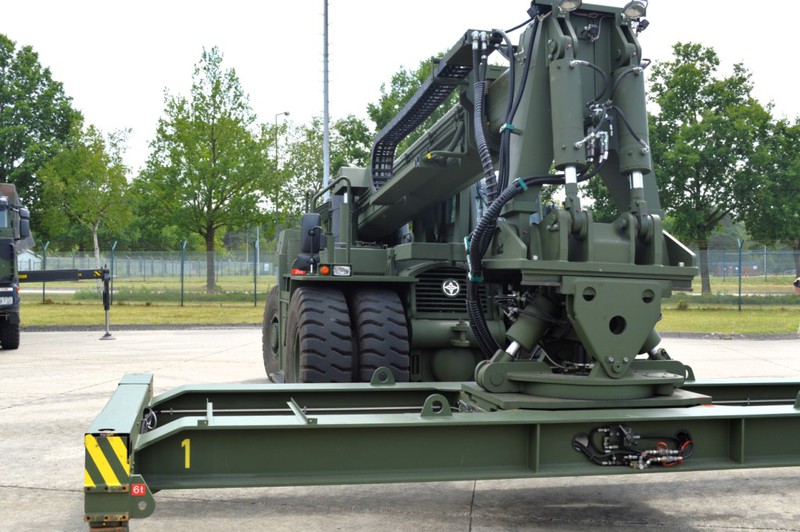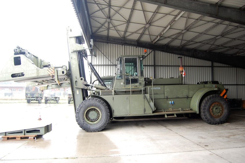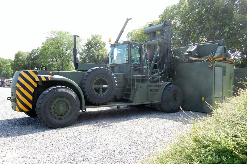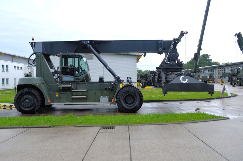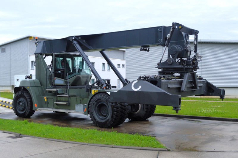 Die Firma Herbst SMAG hat im Auftrag der Bundeswehr den Reach-Stacker ORION V entwickelt und hergestellt. Der ORION V zeichnet sich durch seine Kompaktheit, Geländegängigkeit und Leistungsfähigkeit aus. Die Bundeswehr benötigt für ihre Aufgaben ein Containerumschlaggerät das auch abseits von vorhandenen Infrastrukturen eingesetzt werden kann. Eine weitere Forderung ist die schnelle Verlegbarkeit (Straße, Schiene, Luft oder See), der ORION V erfüllt diese Vorgabe nach einer kurzen Vorbereitung. Dazu ist es nur erforderlich den Greifrahmen (Spreader) zu demontieren und die Bedienerkabine abzusenken. Der Spreader ist beim ORION V der Bundeswehr nur zum Umschlagen von 20ft Container ausgelegt, bzw. von entsprechenden kompatiblen Ladungsträgern. Der ORION V ist in der Lage Lasten bis 24t zu heben, Container bis zu einem Gewicht von 16t können in einer zweiten Reihe abgesetzt oder aufgenommen werden. Der ORION V ist in der Lage bis zu 3 Container übereinander zu stapeln und das in zwei Reihen. Der Spreader ist am Teleskoparm um 360° drehbar und ermöglicht so auch ein Verladen von Container in engen Bereichen.