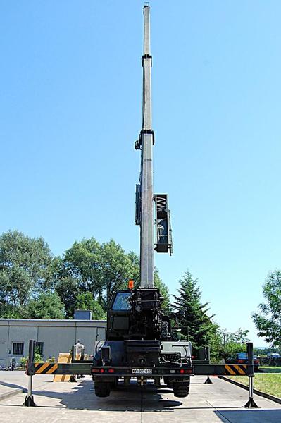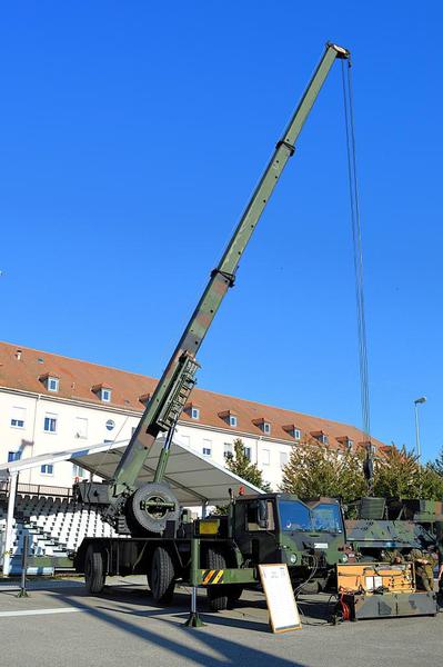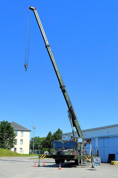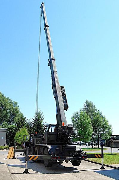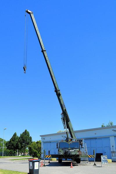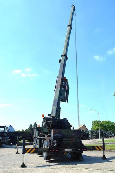 Tragfähigkeit im Mobilkranbetrieb: 15,5 t bei 1 m freier Ausladung und 8 m Hakenhöhe