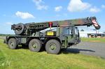 Tragfähigkeit auf ebenem, festen Boden abgestützt: 20 t bei 2,5 m freier Ausladung und 8 m Hakenhöhe